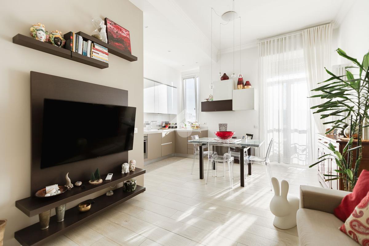 In stabile d’epoca dotato di servizio di portineria e ascensore, proponiamo in vendita un luminoso bilocale posto a un piano alto, caratterizzato da una piacevole doppia esposizione e da una ristrutturazione completa del 2018, eseguita con gusto e attenzione ai dettagli. L’appartamento si presenta con: ingresso accogliente, ampio soggiorno con cucina a vista e accesso a un delizioso balconcino, bagno moderno con doccia, comodo ripostiglio, luminosa camera da letto. La posizione è strategica: il quartiere offre ottimi collegamenti con i mezzi pubblici e una vasta scelta di negozi, bar e servizi di ogni tipo, garantendo comfort e praticità nella vita quotidiana. Una soluzione ideale per chi cerca un’abitazione pronta da vivere.